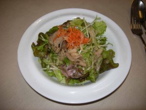神楽坂駅から徒歩2分のイタリア料理店。高級店ではないので気軽に入りやすい。写真はパスタランチの豚肉のペペロンチーノ。メインの肉料理がない代わりに、スパゲティの中に豚肉がけっこう入っている。白菜も入ってい。結果として、とても旨いスパゲティになっている。前菜のサラダがけっこう旨くてよかった。まずドレッシングが旨い。キノコが入っていて旨みがブーストされている。これならメインの肉料理がなくても満足できる。大盛り無料。食後のコーヒーは100円プラスで注文できる。以上の内容で税込み1,100円(コーヒー付きランチ)なのでがんばっていると思う。